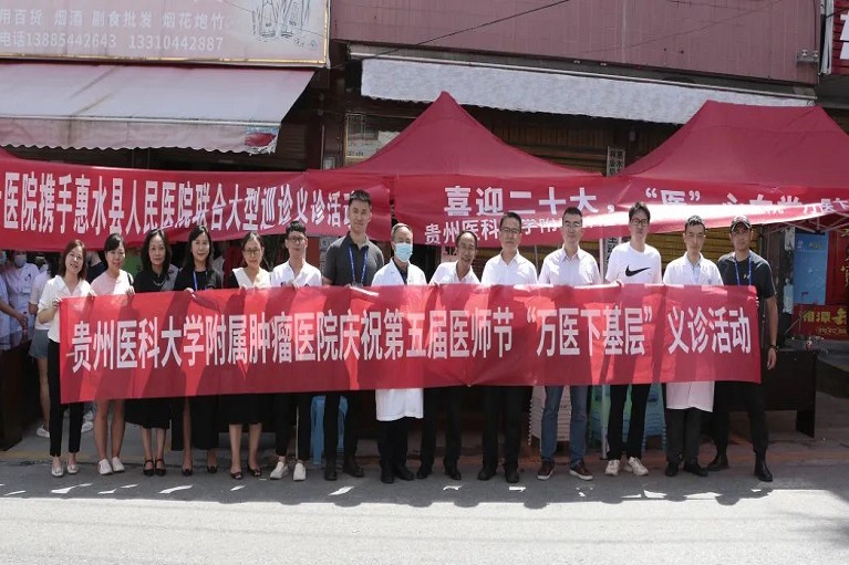 贵州医科大学附属肿瘤医院副院长潘耀振、罗驰,贵州医科大学附属白云医院院长曾庆繁、党委书记赵立新带队来到惠水县,携手惠水县人民医院共同开展“万医下基层”联合义诊活动。