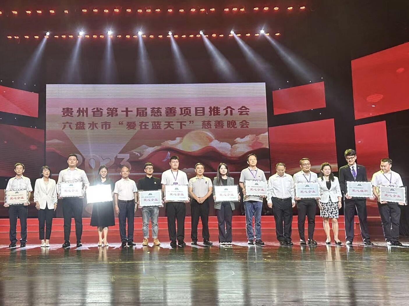 为贯彻落实习近平总书记关于慈善工作的重要论述,弘扬慈善文化,凝聚社会力量助力乡村振兴,推动全省慈善事业高质量发展。9月8日,由贵州省民政厅、六盘水市人民政府主办,贵州省慈善联合会、六盘水市民政局承办的“中华慈善日”宣传暨“贵州省第十届慈善项目推介会”在六盘水市人民广场举行。信邦集团董事长安吉受邀出席,并参加“爱在蓝天下”慈善晚会现场授牌仪式,信邦集团被授予“爱心企业”荣誉称号。