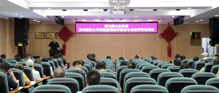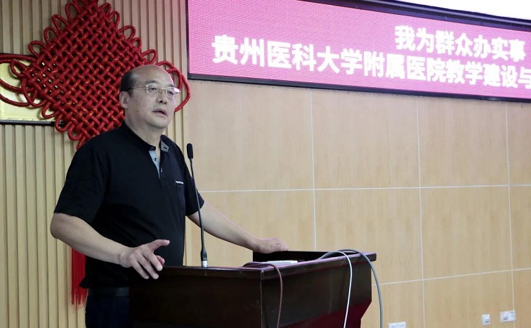 温小军处长发表讲话,并对培训工作作出详细部署。他指出,贵州医科大学白云临床教学中心作为三家附属医院整合资源共建而成的教学机构,共同提升教学能力和在教水平是医院当前的头等大事。其次,临床医生从事教学活动对于促进医疗水平的提升和临床科研的发展有巨大优势,医院要高度重视,严格落实,形成以教研室主任为第一责任人的管理机制。最后,医院要通过教学建设对此前教学工作进行经验总结和查缺补漏,严格按照医科大相关要求进一步系统化、规范化,以最充分的准备和合格的标准迎接贵州省卫健委、省教育厅及省中医药管理局的评审检查,争取成为贵医大标准的附属医院。