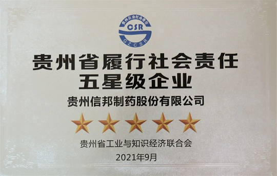 9月26日,贵州省工业与知识经济联合会与贵州省工商业联合会、贵州省质量协会联合召开贵州省工业与知识经济联合会理事会/年会暨2021年企业社会责任报告发布会。信邦集团凭借完善的社会责任管理体系、积极的履责实践和优秀的履责绩效,获评“2020贵州省履行社会责任五星级企业”称号。