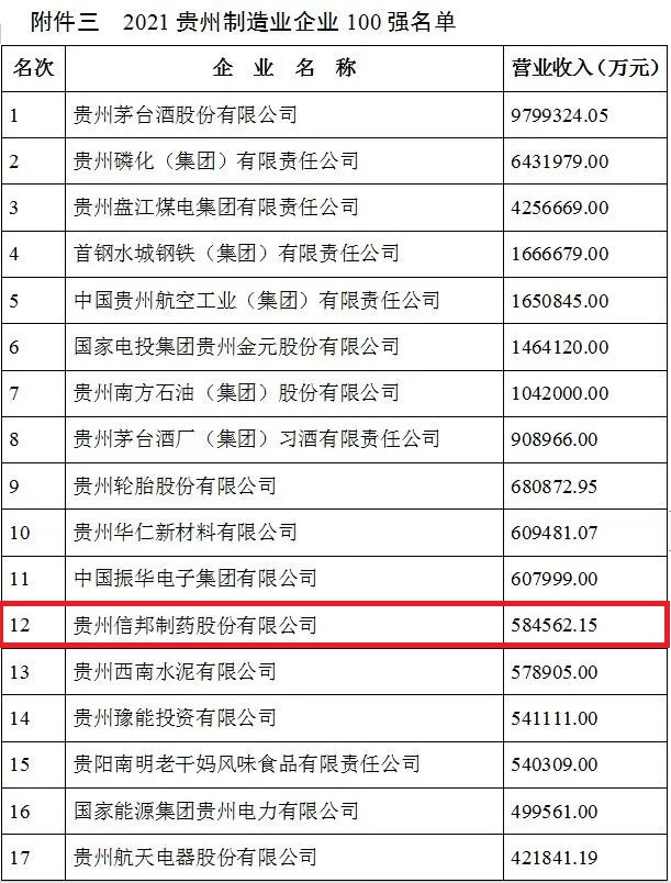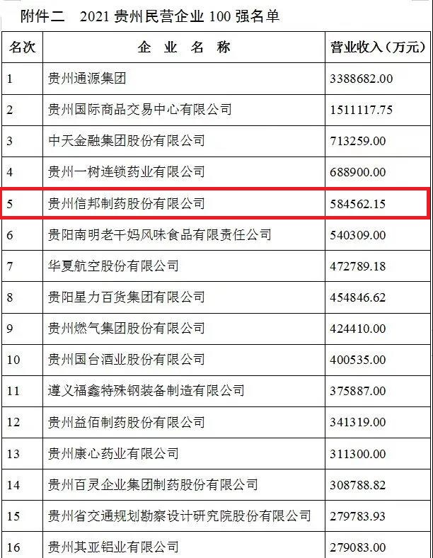 11月1日,贵州省企业联合会、贵州省企业家协会在贵阳发布《2021贵州百强企业榜单》及《2021贵州百强企业发展报告》。自2016年首次亮相后,信邦集团已连续六年荣登贵州企业双百强榜单,并持续领跑贵州医药行业。